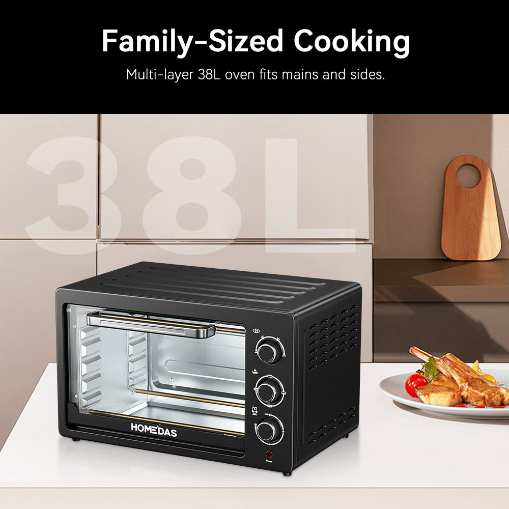 - Multi-layer 38L (40Qt) oven fits mains and sides.