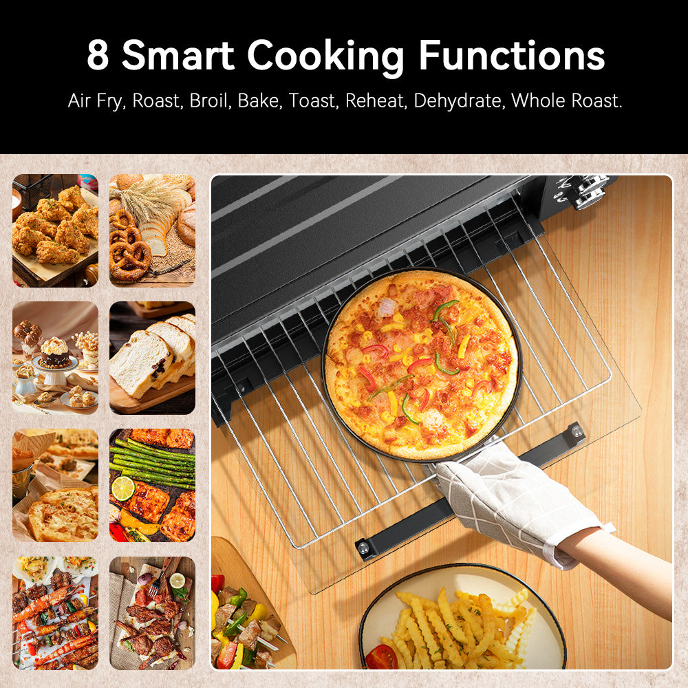 - Air Fry, Roast, Broil, Bake, Toast, Reheat, Dehydrate, Whole Roast.